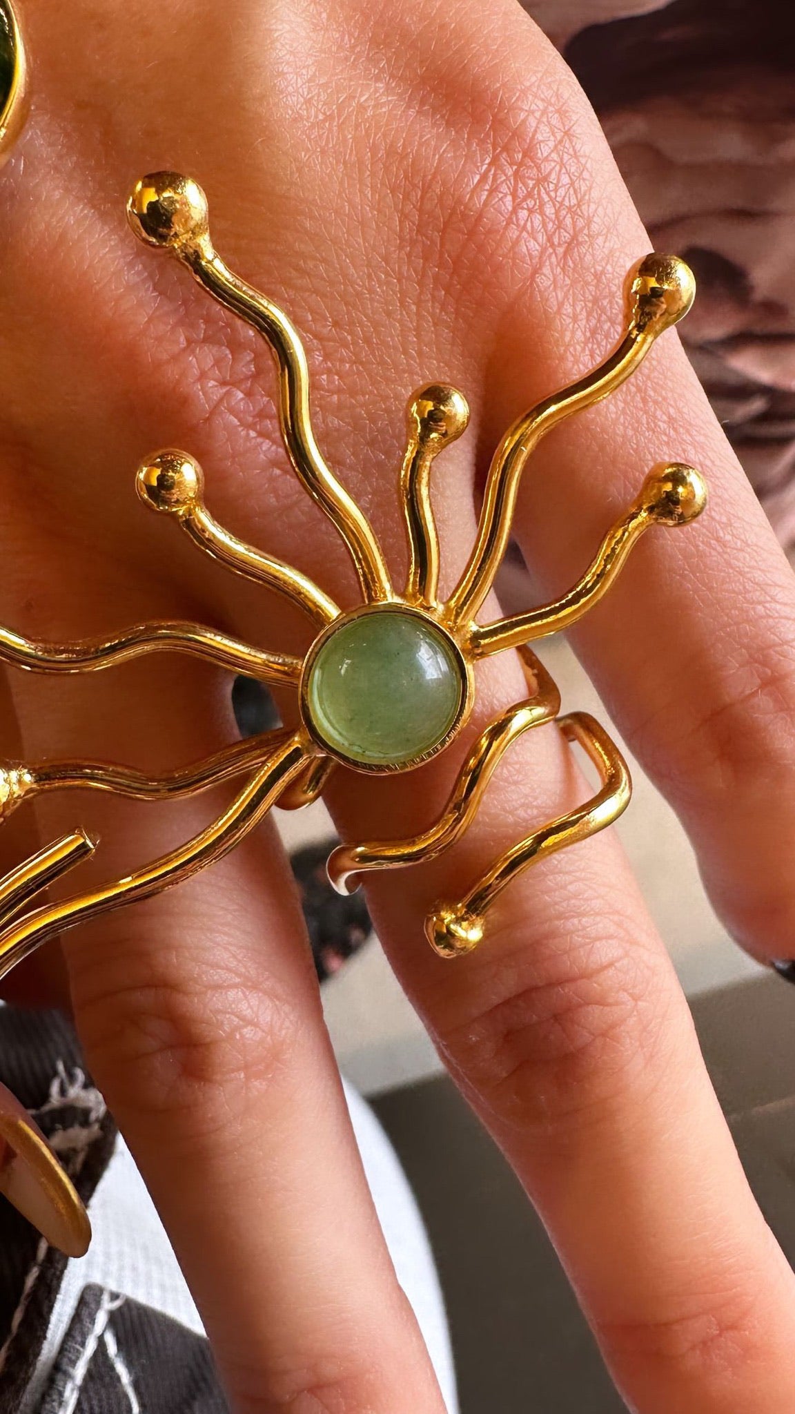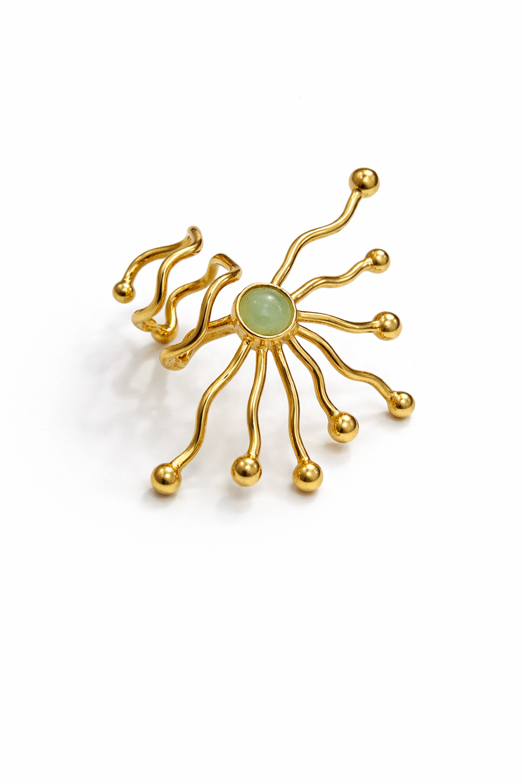 تتميز هذه القطعة بحجر اليشم - الذي يحظى بالتقدير لعمقه وقوته وجماله الطبيعي - مما يوازن بين الحضور النحتي والأناقة الراقية.
