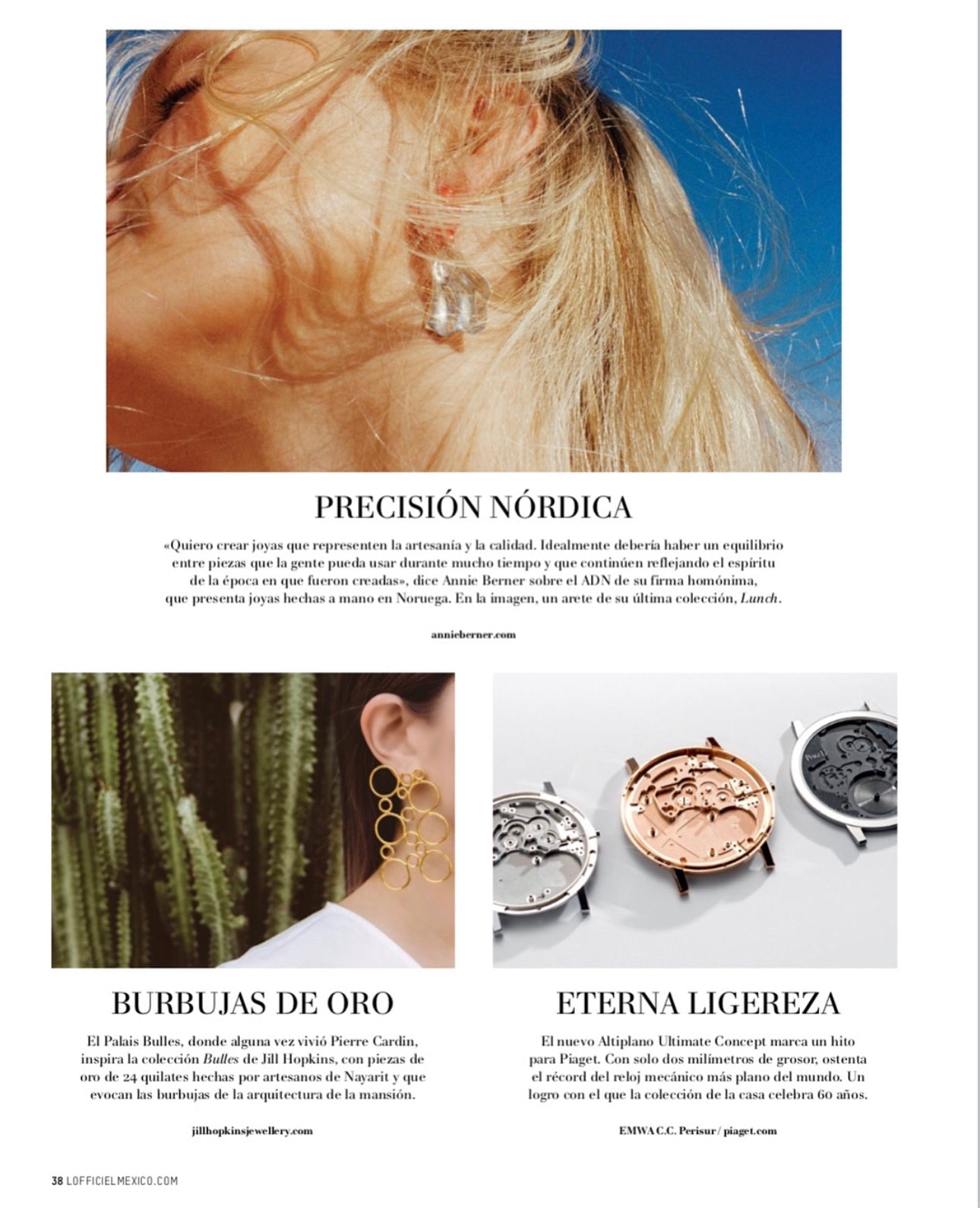 Our Bubbles wall earrings featured at the exclusive L'Officiel Mexico Magazine.