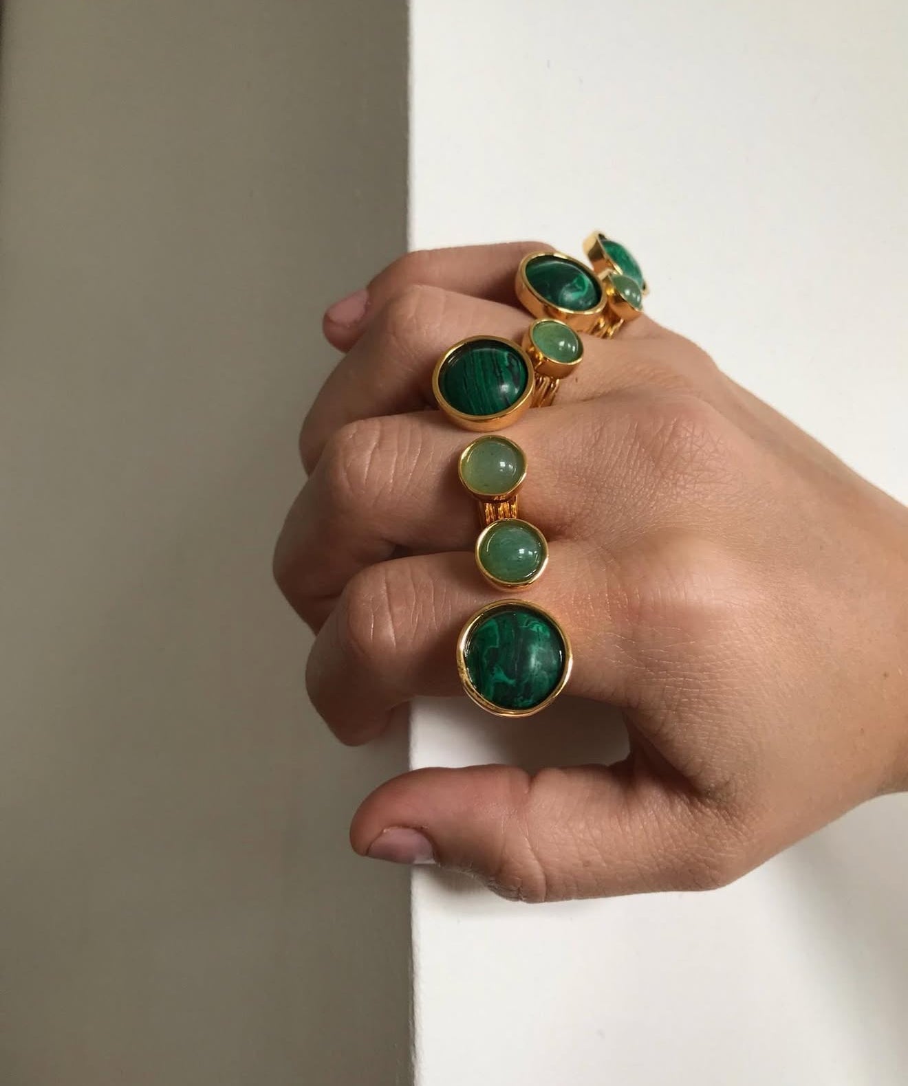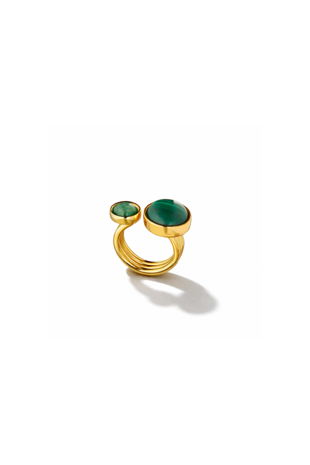 Two natural stones sit in harmony: a luminous jade, soft and serene, paired with a deep malachite, rich with organic veining. Together, they create a quiet contrast—light and depth, calm and intensity—like two energies meeting in perfect alignment.